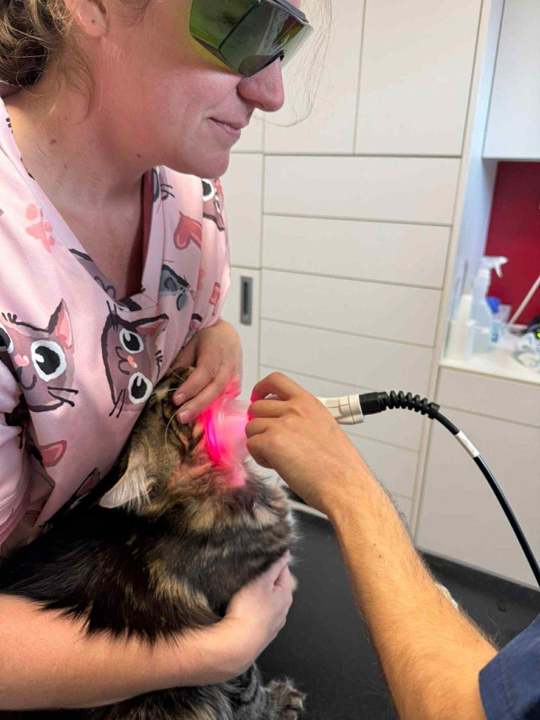 Ik stopte onmiddellijk met het geven van potentiƫle allergenen zoals kip en rundvlees. Tijdens de dierenartsopname kreeg hij paardenvlees en daarna stapte ik over op konijn. Omdat ik meer dan ƩƩn kat heb, moest ik de kat strikt van de anderen scheiden.