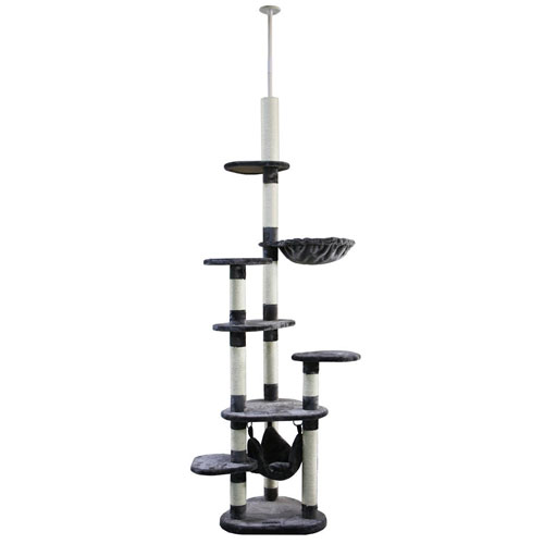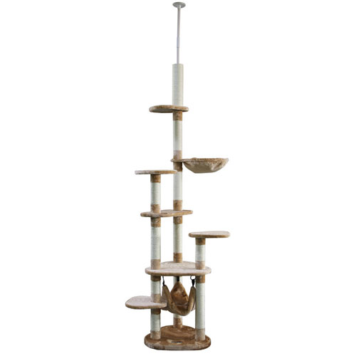 Kattenkrabpaal met 8 niveaus, verschillende rustplekken en meerdere speelplekken zodat uw kat met veel plezier van het ene niveau naar het andere kan springen. Ook zijn er diverse plekken waar je kunt krabben. De platforms zijn gemaakt van zacht pluche en de palen zijn gemaakt van natuurlijk sisaltouw. Hij is uitschuifbaar, wat betekent dat hij een hoogte heeft van 226-260 cm, met een bredere basis voor meer stabiliteit, stokken van 7 cm. Verkrijgbaar in verschillende kleuren.