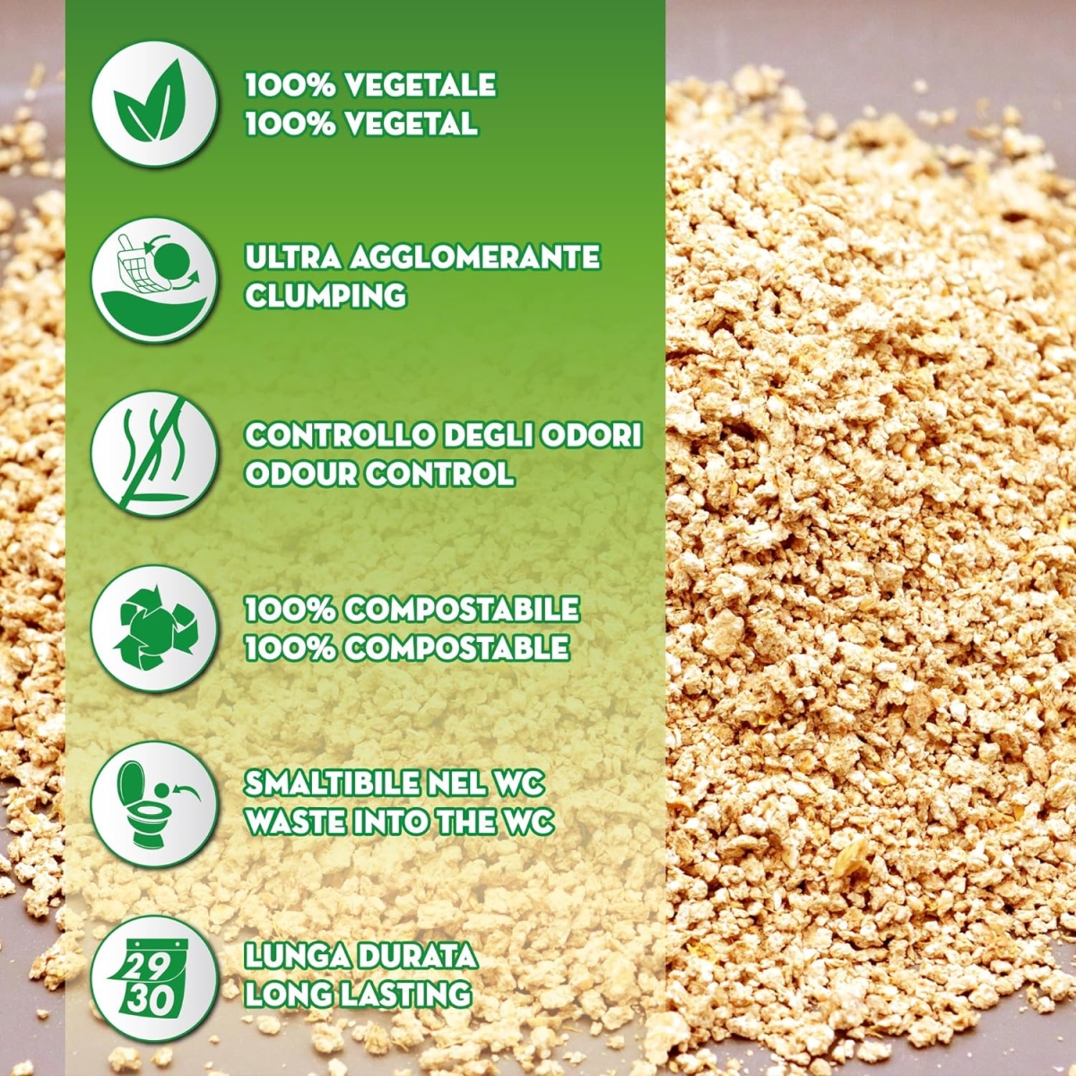 Als u niet alleen veel waarde hecht aan het welzijn van uw kat, maar ook aan het milieu, is Croci Eco Clean kattenbakvulling een goede keuze: deze is gemaakt van natuurlijke gerst. De productie is bijzonder koolstofarm en het gebruikte afval kan in de tuincompost of door het toilet worden gegooid! Croci Eco Clean kattenbakvulling vormt klonten, waardoor de dagelijkse reiniging van de kattenbak snel en eenvoudig gaat. Tegelijkertijd absorbeert het effectief vloeistoffen en draagt het dankzij zijn neutraliserende eigenschappen bij aan frisse lucht in het appartement. Dankzij het lage gewicht kan deze hoogwaardige kattenbakvulling uit Italië bovendien probleemloos vervoerd worden!