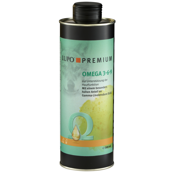 LUPO OMEGA 3-6-9 PREMIUM is een speciale mix van hennep- en visolie met toevoeging van teunisbloemolie. Het mengsel kenmerkt zich door een hoog gehalte aan essentiële vetzuren. Vooral omega-3-vetzuren zijn hierin in een breed spectrum aanwezig en in een optimale verhouding tot omega-6-vetzuren (1:3). De aanwezige visolie maakt het mengsel perfect, omdat het de belangrijke omega 3-vetzuren EPA en DHA levert.Â