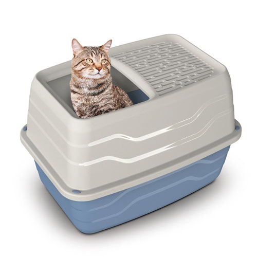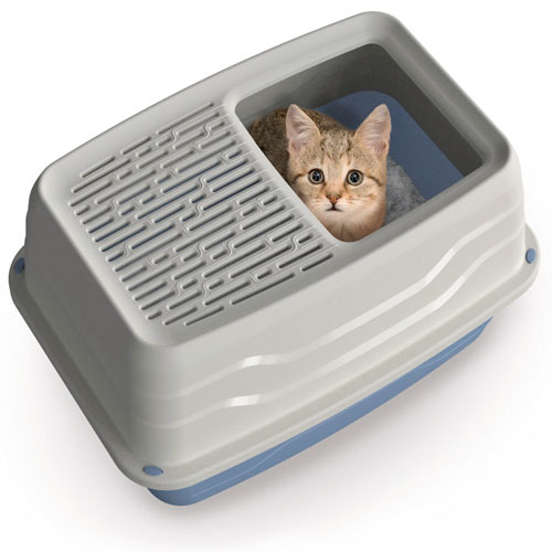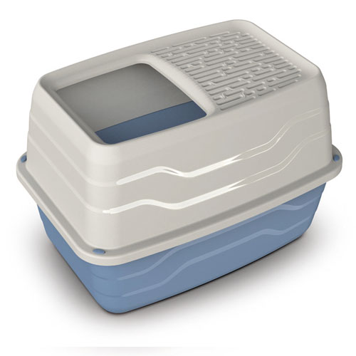 Grote kattenbak met in- en uitgang aan de bovenzijde . Het dak is afneembaar en bevat perforaties om te voorkomen dat vuil en zand van binnenuit ontsnappen en de vloer vervuilen. Het is zeer hygiënisch en gemakkelijk schoon te maken en te demonteren.  Verkrijgbaar in diverse kleuren.