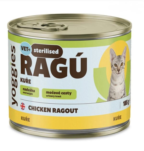 Yoggies RAGÚ met kippenmonoproteïne voor gecastreerde dieren. De pure samenstelling zonder granen en chemicaliën is geschikt voor een gevoelige spijsvertering, helpt bij het behouden van een slank figuur en ondersteunt de urinewegen.