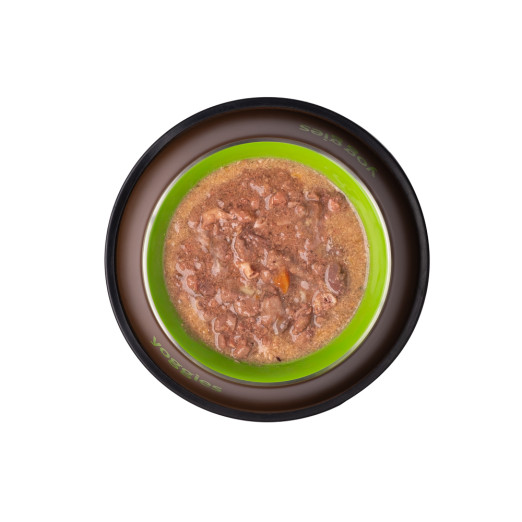 Volledige voeding voor volwassen katten met royale stukken kalkoenvlees, orgaanvlees en zalm in een licht romige saus, waarvan de consistentie meer aan ragout doet denken. Het ruikt heerlijk naar geroosterd vlees met een vleugje pompoen en zal uw kat zeker bekoren. Het is onder andere bekend dat katten weinig drinken. Soepen zijn een ideaal alternatief om de vochtbalans van uw huisdier aan te vullen, wat bijvoorbeeld belangrijk is voor een goede werking van de nieren.