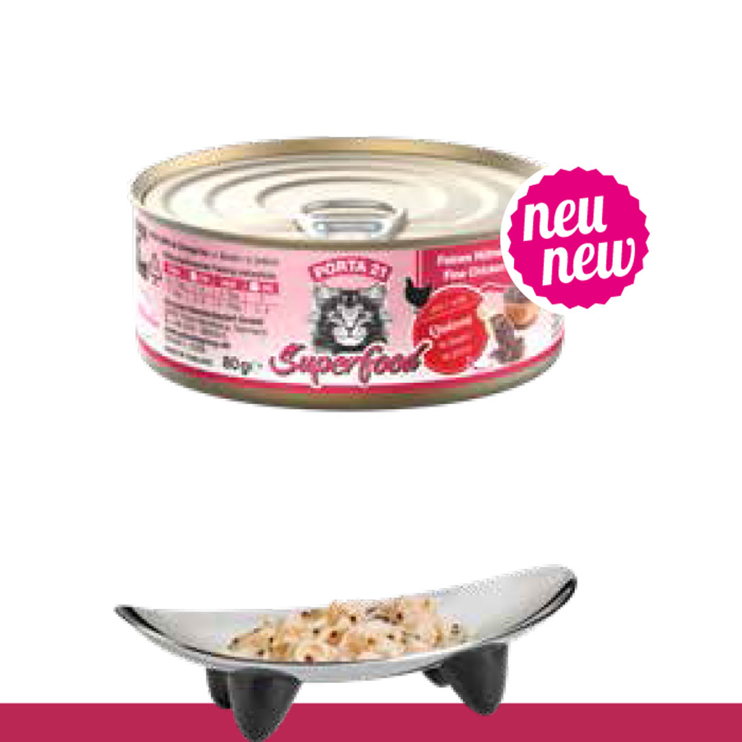 * Gezondheid in elke voerbak met Porta 21: Vier blikjes Porta 21 Superfood zijn essentieel voor een goede hydratatie en spijsvertering. Ze bevatten vlees van een milieuvriendelijke vangst en superfoods zoals chiazaad. Deze graanvrije, complete voeding zonder kunstmatige toevoegingen is ideaal voor kieskeurige en gevoelige katten en helpt gezondheidsproblemen te voorkomen die verband houden met een gebrek aan vocht.
