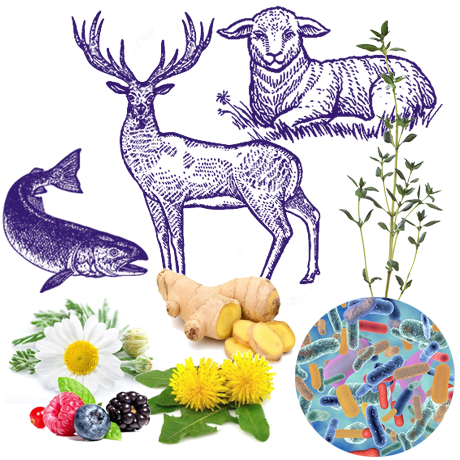 De basis van de korrels is langzaam gedroogd rauw lamsvlees, haring, fruit en kruiden. Het koude persproces vindt plaats bij temperaturen tot 38°C, zodat belangrijke natuurlijke voedingsstoffen tijdens de productie niet verloren gaan. Er wordt ook zeewier toegevoegd om de immuniteit en de spijsvertering te ondersteunen. De korrels bevatten ook visolie voor de smaak en als bron van essentiële vetzuren, voor een elastische en gezonde huid en vacht. De energiebron zijn gemakkelijk verteerbare aardappelvlokken en aminozuren zoals ” taurine ” ter ondersteuning van de hartfunctie, het gezichtsvermogen en andere belangrijke vitale functies van katten. vrij van granen, chemicaliën, soja of andere lokstoffen of conserveringsmiddelen.