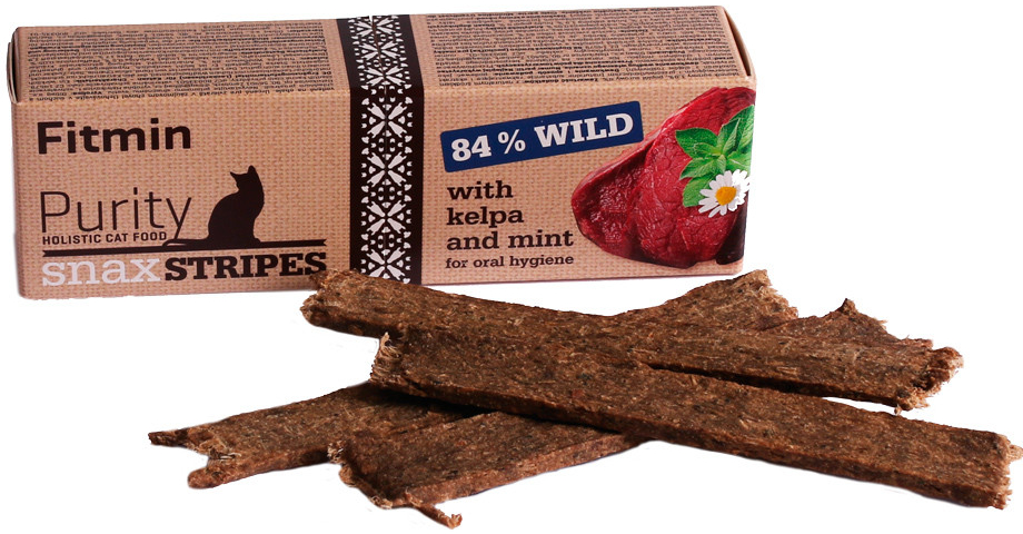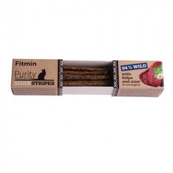 Holistische traktatie voor katten met wild. Een eerlijke, natuurlijke traktatie voor katten met een hoog wildaandeel, waar katten niet alleen van genieten, maar ook van profiteren. De traktatie voor katten Fitmin Purity Snax is glutenvrij, bevat geen synthetische antioxidanten, ongewenste stabilisatoren of kleurstoffen.