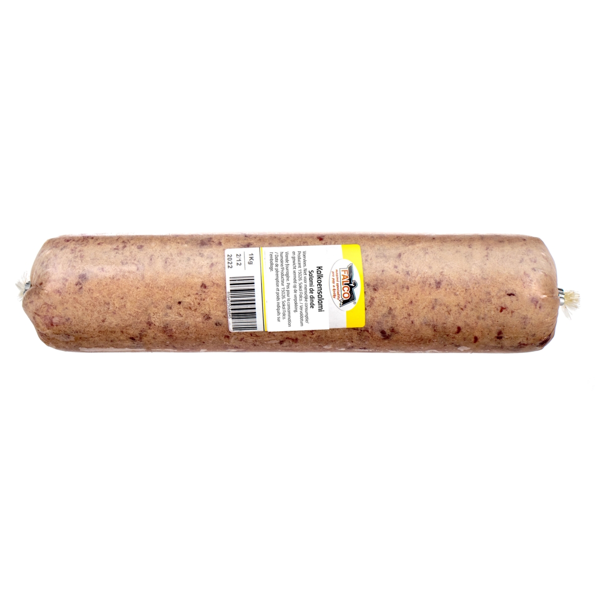 Gemalen mengsel van kalkoenvlees, snijresten en een mengsel van organen. Alles zit in een verpakking van ongeveer 1 kg. De salami wordt in een kookdarm verpakt, zodat deze met de darm gekookt kan worden.
