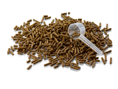 Meng dagelijks 2g/10 kg lichaamsgewicht door het voer.